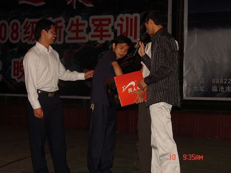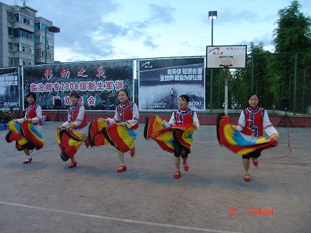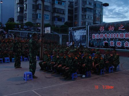 党委宣传部张玉超)08年9月10日晚,临沧师专灯光球场成了歌的天空,舞的湖泊,欢腾的天堂,感动的海洋……这里正在进行军训文艺晚会演出。
